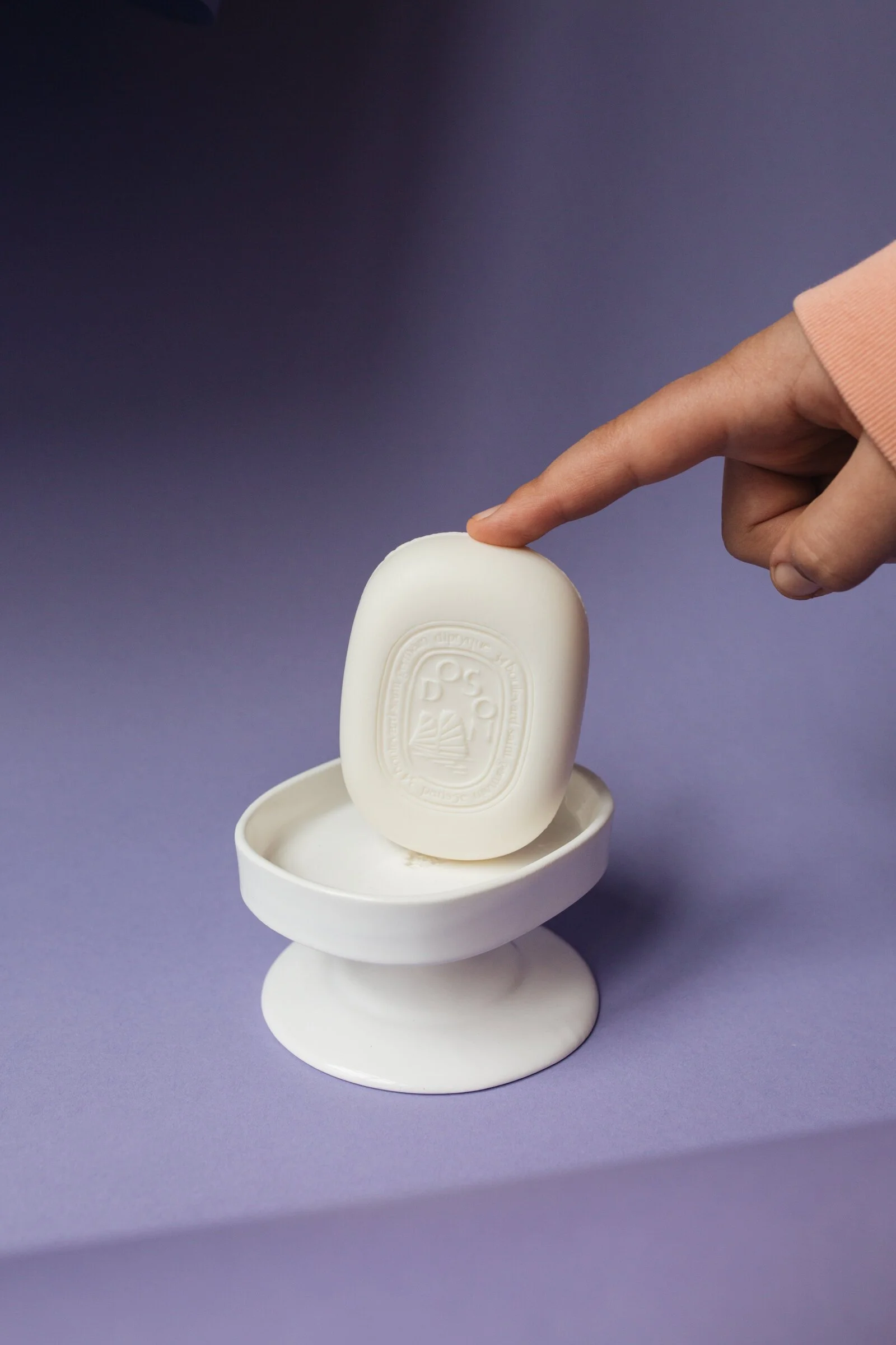 2) Oh lala! C’est très chic! Klassischer geht es nicht, also die Seifenbars von Diptyque sind und bleiben ein Muss. Parfümierte Do Son Seife, 24 EUR Die hohe Seifenschale ist ebenfalls bei Diptyque erhältlich. Hohe ovale Seifenschale, 115 EUR