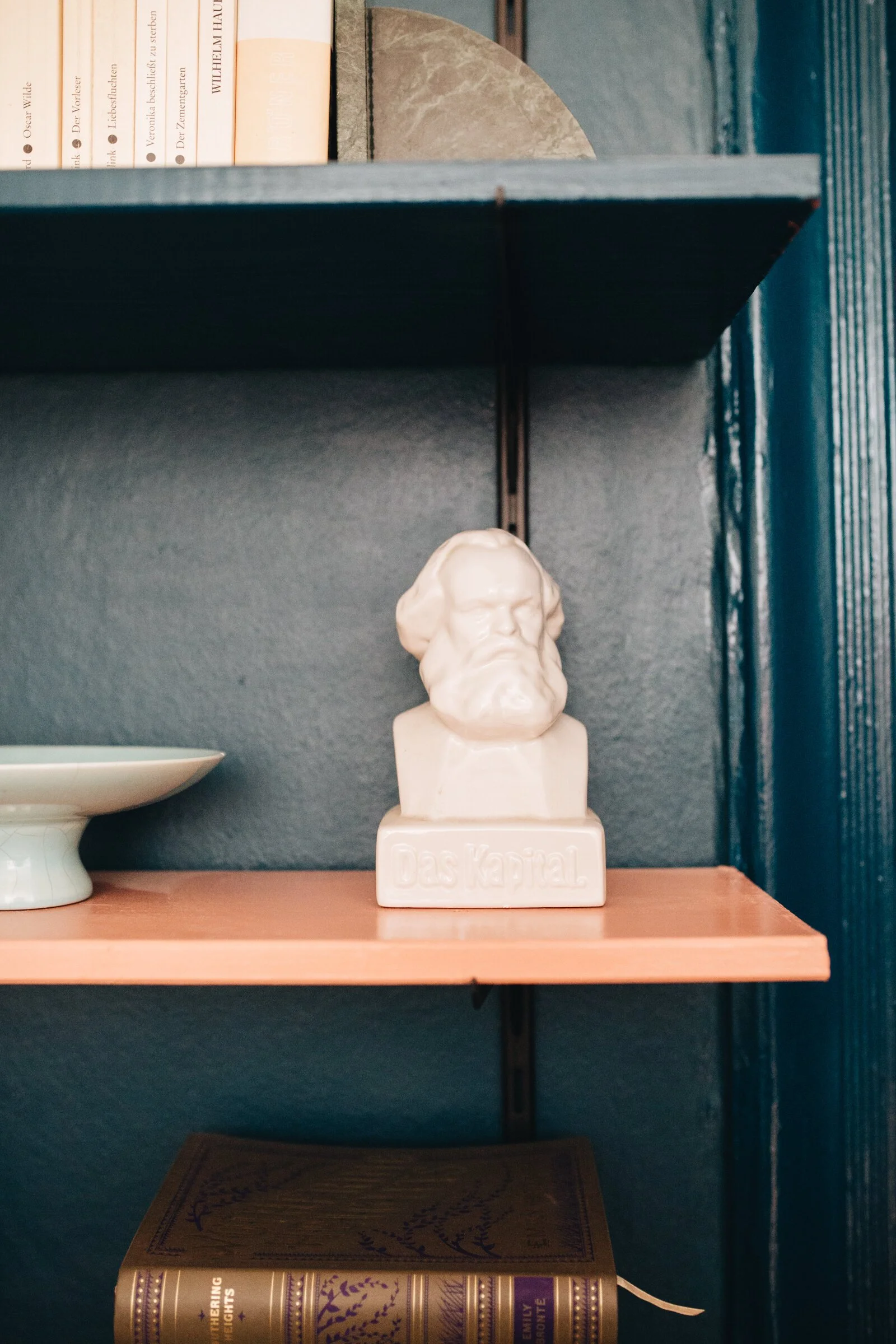 Ursprünglich war mein Vorhaben, alles in Naturfarben zu halten in einer Farbskala von beige bis grau - der typische Skandi-Stil halt. Als ich aber angefangen habe, mehr Geld in Accessoires zu unvestieren, habe ich gemerkt, dass es mich einfach mehr zu den farbigen Sachen hinzieht und die einfach mehr Freude machen als die farbneutralen. Irgendwann dachte ich - scheiß drauf, ich bin halt einfach nicht der beige-Typ und da ich die Dinge gerne konsequent mache, sollten dann alle Räume konsequent nach gewissen Farbcodes gestaltet werden. Ich hab keine klassischen Einrichtungstipps außer, einfach das zu machen, wonach einem ist. Die Wände kann man schließlich immer wieder neu streichen, wenns dann doch nicht gefällt. Generell würde ich aber mit dem Gerücht aufräumen, dass man kleine Räume hell streichen soll - ich finde eher, dass weiße Wände einen kleinen Raum auch nicht größer machen, deswegen genau hier eher zu den dunkleren Farben greifen und den Raum lieber cozy machen. Ansonsten lasse ich mich persönlich weniger von Interior-Blogs inspirieren, dafür viel mehr von Pop-Kultur an sich; das geht von Serien wie Twin Peaks über Musikvideos bis hin zu Fotografen wie Guy Bourdin z.B. Ich fühle mich in einer Wohnung wohler, die an ein Set-Design erinnert als an eine klassische Wohnung an sich, haha.